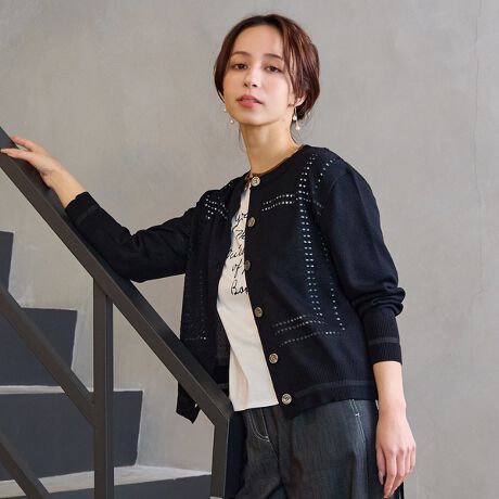 パンチングでチェックを表現したカーディガン