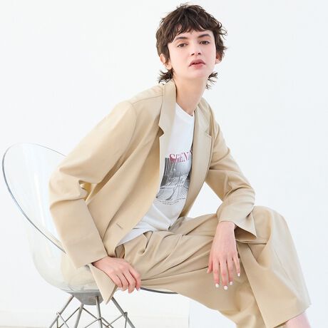 きちんと感のあるラペルでかちっと見えるけれど、ゆるっと着られる。そんなサイジングも清涼感にひと役買って。