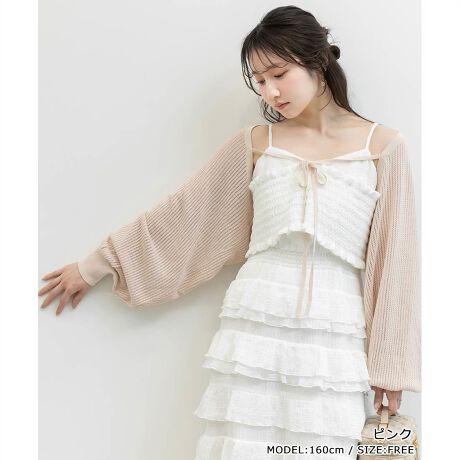 透け感のある編地が涼しげなボレロカーディガン。