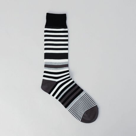 [型番:07-88QO07-206]ポップでマルチカラーのボーダークルーソックスです。トラッドなシーンにもパンツの裾からチラ見せする可愛らしい色が印象的なデザインです。しっかりとしたテンションを持たせた編みで安定した履き心地です。