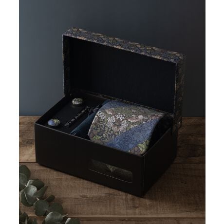 モリスの有名な作品、イチゴ泥棒(strawberry thief)やゴールデンリリーなどを使用した高級感のあるネクタイ。