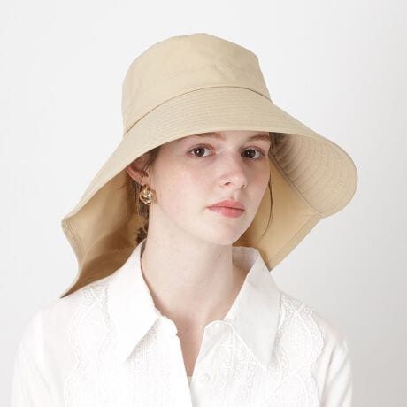 【遮光】たれ付きハット 帽子 広つば ロゴチャーム付き UV サイズ調整