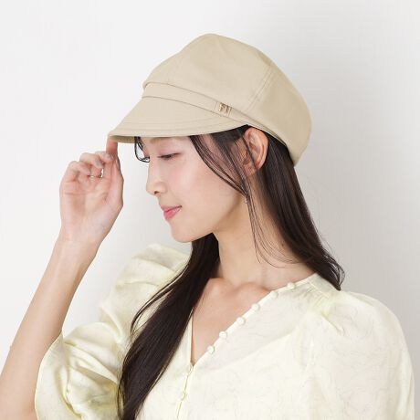 【日本製 遮光 洗える】6方キャスケット 帽子 アーチロゴチャーム付き UV サイズ調整