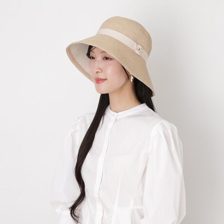【遮光】クッションリボン広つばハット 帽子 ロゴリング付き UV サイズ調整