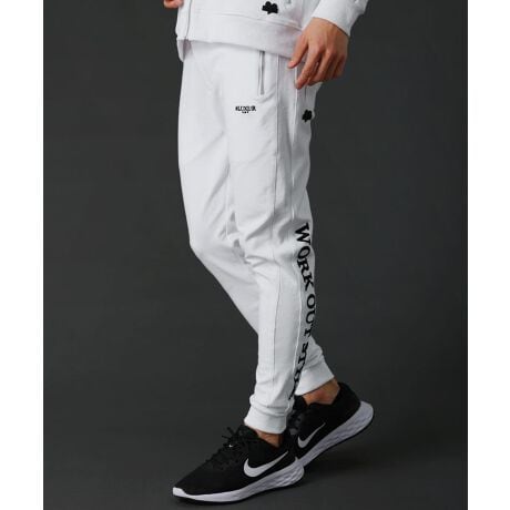 存在感のある立体刺繍を施した、ストレッチジョガーパンツ。