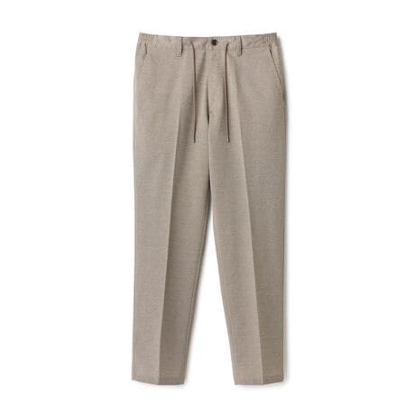 素材には、和歌山県・カネマサ莫大小で編み立てたハイゲージニット(ポリエステル60%・綿40%)を採用。布帛のような端正なハリ感を持ちながら、ジャージ素材ならではの伸縮性と軽さを追求しました。きちんと見えと快適性を兼ね備えた、大人にふさわしい質感です。
