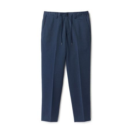 素材には、和歌山県・カネマサ莫大小で編み立てたハイゲージニット(ポリエステル60%・綿40%)を採用。布帛のような端正なハリ感を持ちながら、ジャージ素材ならではの伸縮性と軽さを追求しました。きちんと見えと快適性を兼ね備えた、大人にふさわしい質感です。