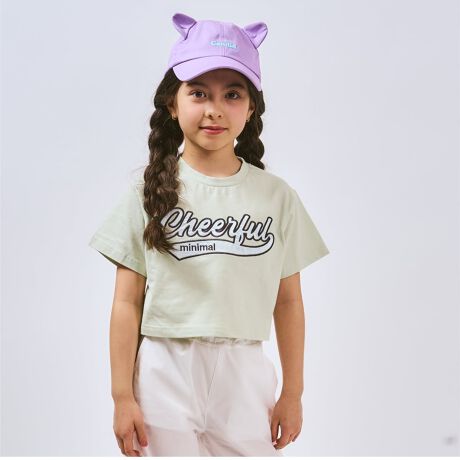【綿100%】ロゴアップリケクロップド半袖Tシャツ