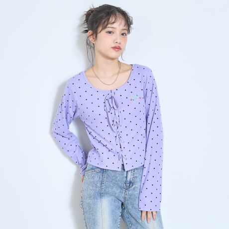 小さめのドット柄で仕上げた生地を使用しており、着るだけでやさしいガーリーなムードに包まれます。