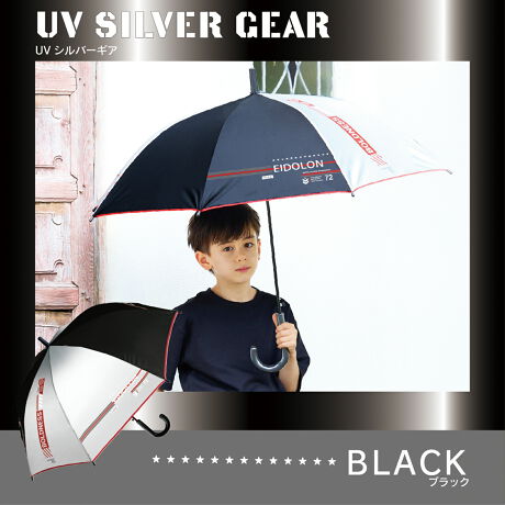 シルバー生地と縦型ロゴで強い日差しにも負けない!