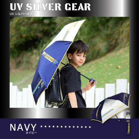 シルバー生地と縦型ロゴで強い日差しにも負けない!カバンに下げられるカラビナ手元仕様。