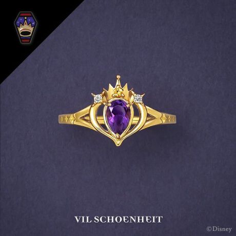 「ヴィル・シェーンハイト」のモチーフである王冠をイメージした立体的なデザイン。アメジストをセッティングした透かしの入ったトップに華やかなアームが高級感を演出し、美しく優雅なヴィルを表現しています。散りばめられた光のモチーフがポムフィオーレ寮らしさを感じさせます。