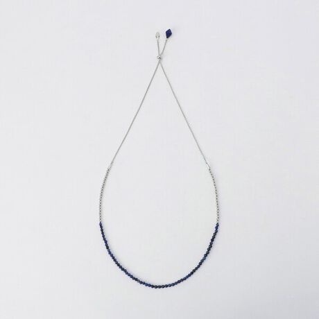 天然石を前にしてカラーを際立たせてコーディネートしたり、チェーンを長めにつくっているので逆側にし、スライドパーツで調節してラリエット風に使うこともできます。