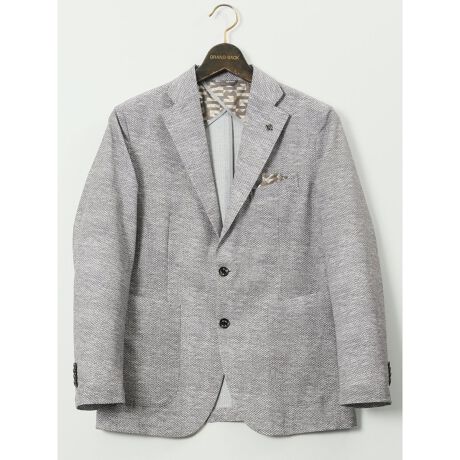 サマージャケットとして盛夏まで羽織れるテーラードジャケット(2ボタン・ノッチドラペル・2パッチポケット・左胸ポケット・サイドベンツ・チーフ付き・蜂のアイコン)です。同素材のセットアップパンツにスニーカーを合わせるとスポーティーな着こなしが完成します。プライベートからオフィスカジュアルまでオンオフ兼用で大活躍してくれます。