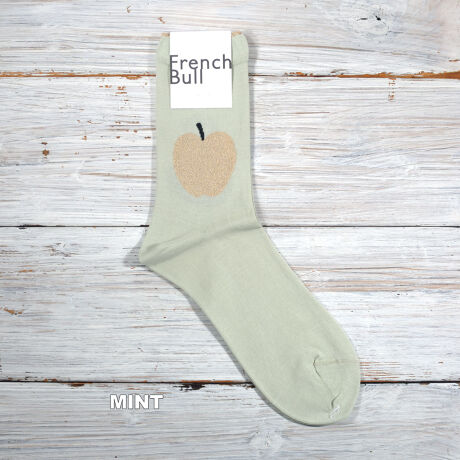 りんごモチーフをゴールドのラメ糸で、洋梨モチーフをモノトーン柄で表現したソックスです。ベースはガス焼き処理により毛羽を抑えたシルケットの綿糸で薄く編み立てました。つま先はリンキング仕様であたりがなく、快適な履き心地です。TOPのゴールドのピコットがポイントに。上品な雰囲気のあるモチーフ柄がコーディネートのアクセントになる1足です。