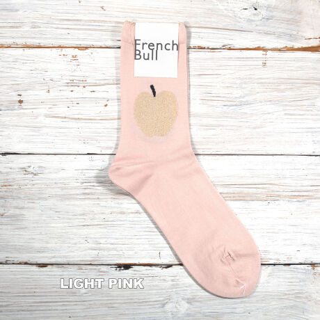 りんごモチーフをゴールドのラメ糸で、洋梨モチーフをモノトーン柄で表現したソックスです。ベースはガス焼き処理により毛羽を抑えたシルケットの綿糸で薄く編み立てました。つま先はリンキング仕様であたりがなく、快適な履き心地です。TOPのゴールドのピコットがポイントに。上品な雰囲気のあるモチーフ柄がコーディネートのアクセントになる1足です。