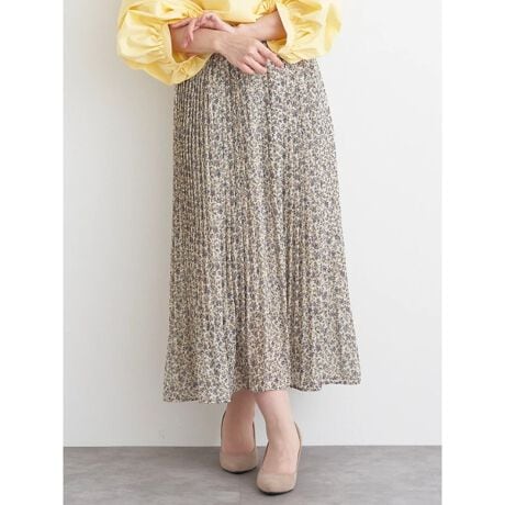 コーディネートのアクセントに映える花柄プリーツスカート