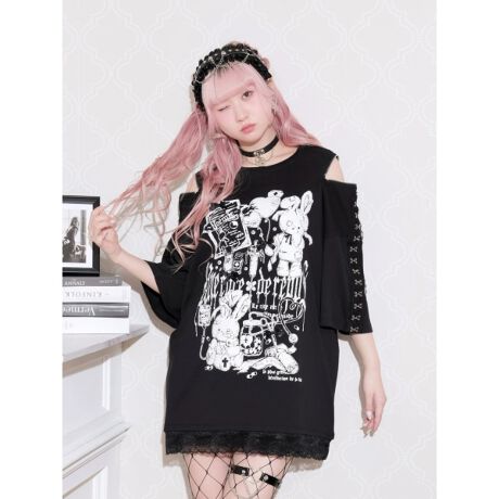 ショルダーに施したジップデザインとレース切替がアクセントになり、甘さとダークなムードを程よくミックスします。