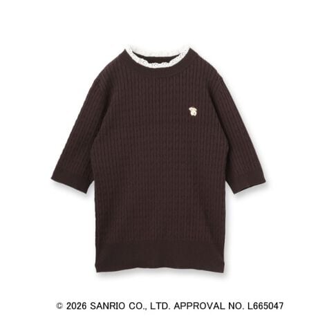 定番のケーブルニットとベロア素材を使用したリンガーTシャツで大人も着用しやすいデザイン。