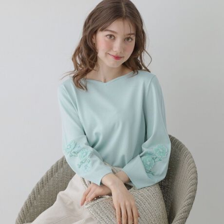 フレアスカートやタイトスカートと合わせればフェミニンなハートネックとフラワーモチーフが引き立ち上品な印象に仕上がります。