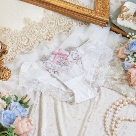 大人気を博した「アリーシャ」が、新しいカラーを加えてリバイバル。イングリッシュローズが咲きほこる、歴史あるヨーロッパのお城をイメージしたシリーズです。建物の優美な装飾を表現したフロントレースは、繊細な幾何学模様の曲線を全体にあしらい、女性らしくも印象的なデザインに。配色は交互にすることで、思わず目をひく華やかさを演出します。中央にはお庭に咲くイングリッシュローズを散りばめ、きらめくラメ糸で豪華に仕上げました。その周りにはメインのお花を引き立てる手描き風のラフなステッチで、お花や曲線のモチーフをほどこして奥行き感をプラス。気品高いエレガントなイメージを身にまとうような、特別感あふれるコレクションです。