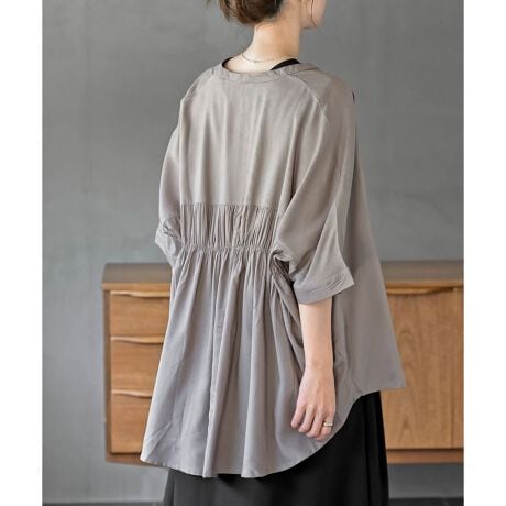 バンドカラーレーヨンワイドブラウス