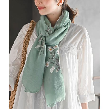 お花の刺繍をあしらった大人かわいいストール