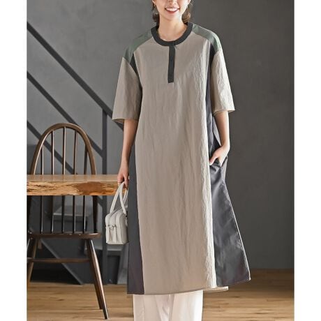 配色で切り替えたレトロムードなワンピース。