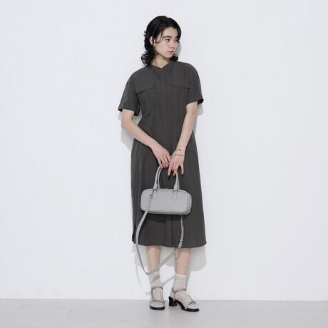 身体のラインを拾い過ぎないIラインシルエットで快適に着られ、裾は丸みを持たせたカッティングにより抜け感を演出しています。