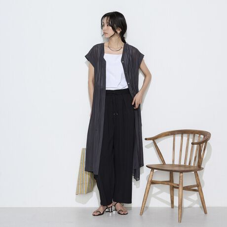 前を開けて羽織としても着用でき、さまざまな着こなしを楽しめます。切り替えを入れたフレンチスリーブは腕まわりを自然にカバーしながら涼やかな着心地です。