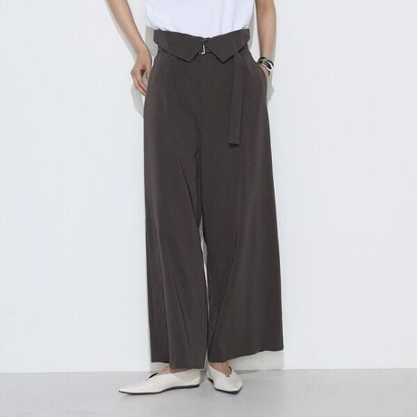 ウエスト部分に折り返しの立体的なデザインを施した、ハイウエストのワイドパンツです。