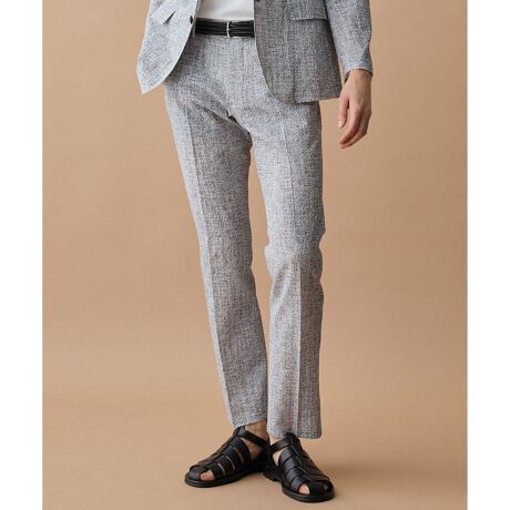 同素材のジャケット、ベストとのセットアップスタイルはもちろん、ポロシャツやリネンシャツと合わせた涼しげなスタイルがおすすめです。機能性が高いため、出張や旅行などのアクティブなシーンでも活躍します。