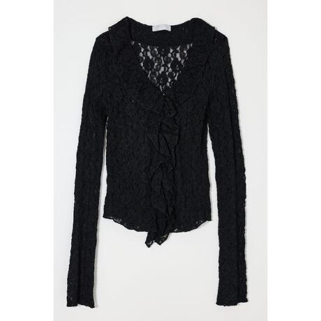 【LACE RUFFLE TOP/ レース ラッフルトップス】■ポイントフロントにあしらったリボンと繊細なフリルが目を引く、フェミニンムードたっぷりのレースラッフルトップス。甘さのあるデザインながら、コンパクトなシルエットで大人も取り入れやすい一枚です。■ディテール軽やかなレース素材を使用し、透け感と立体的なラッフルが上品な表情を演出。フロントリボンがさりげないアクセントとなり、華やかさをプラスします。■スタイリングデニムやスラックスと合わせて甘さを引き算したスタイリングがおすすめ。ジャケットのインナーとしても映え、コンパクトなバランスを活かした着こなしが楽しめます。■生地透け感:あり裏 地:なし伸縮性:なし光沢感:なし■商品のお気に入り登録お気に入りアイテムの再入荷・在庫1点などの通知を受け取ることができます。■ブランドのお気に入り登録新作アイテムの入荷や人気アイテムの再入荷、おすすめトピックスなど、いち早くブランドの情報を受け取ることができます。[注意事項]※画像の商品はサンプルです。実際の商品と仕様、加工が若干異なる場合があります。※画像の商品は光の照射や角度、お使いのモニター環境により、実物と色味が異なる場合がございます。※着用、お取り扱いの際は、アテンションタグをご確認ください。