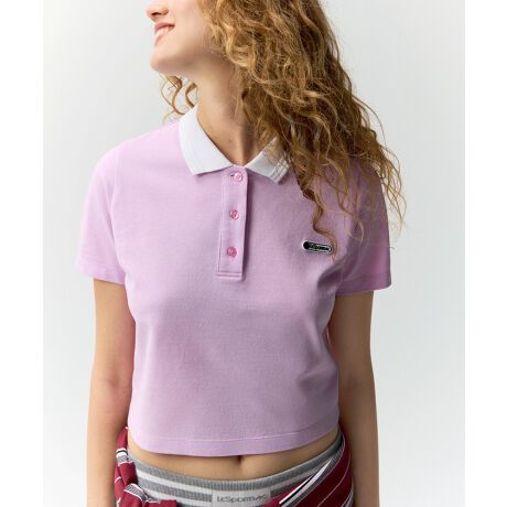 配色の襟がポイントのバイカラークロップドポロシャツ。