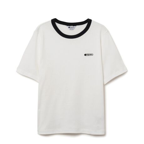 ネックの配色がアクセントになったクルーネックTシャツ。