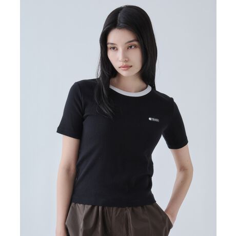 ネックの配色がアクセントになったクルーネックTシャツ。
