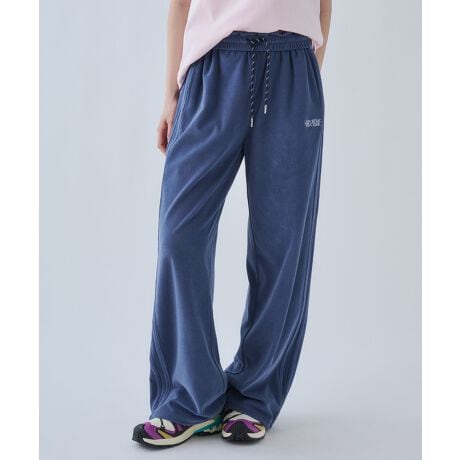 UVカット機能付きのパイル素材を使用したトラックパンツ。