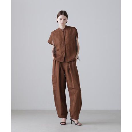 トリアセテートの落ち感や艶感と麻スラブの表面感を持ち合わせた素材でできたパンツです。
