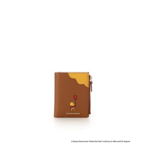 ◇Samantha Thavasa(サマンサタバサ)の「くまのプーさん」コレクション 折財布日本のキャラクターアーティストであるタロアウトが描いた『くまのプーさん』をサマンサタバサの人気シリーズに取り入れたアイテムが登場。【デザイン】ブラウンカラーをベースにはちみつが垂れているようなデザインとタロアウトが描いた『くまのプーさん』を型押しで表現した折財布。内装には「クリストファー・ロビン」と「プーさん」が仲良く寄り添っている後ろ姿を箔押しで表現しており、細部まで遊び心あるデザイン。本のように縦に開く折財布でカードポケットやフリーポケットも豊富。薄マチなのでバッグに収納する時もかさばらないサイズ感です。