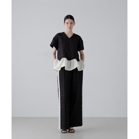 ブロック調のジャガード素材を使用したパンツになります。