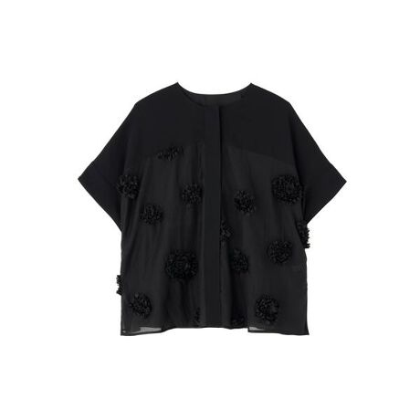 繊細なシアー感のある素材にフラワーモチーフの刺繍が施された素材を使用したブラウスです。