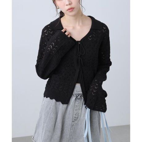 透かし編み襟付きニットカーディガン