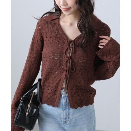 透かし編み襟付きニットカーディガン