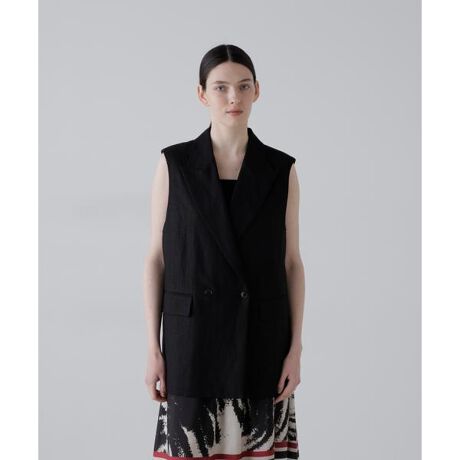 しなやかなハリ感のある麻100%の素材でできたジレジャケットです。