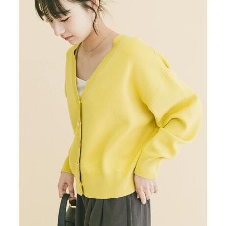 ふんわりと柔らかな質感で、暖かさをしっかりキープしつつも重たくならず、冬から春へと軽やかにシフトできる一枚。すっきりとしたVネックデザインは、ハイネックインナーを合わせてももたつかず、レイヤードもしやすいのが魅力です。カジュアルなスウェットライク素材ながら、上品なVラインとボタンディテールが大人らしい抜け感を演出。着心地はラクなのにきちんと見えが叶う、デイリーに活躍する万能カーディガンです。
