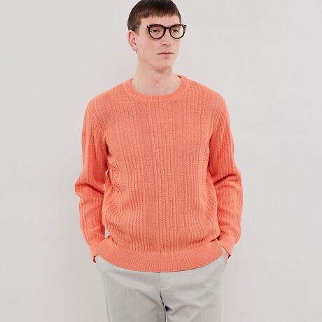 レギュラーフィットのシンプルなクルーネックのプルオーバーです。ざっくりとした編地感の為、引っかけと自重による寸法変化にご注意の上、ご着用ください。