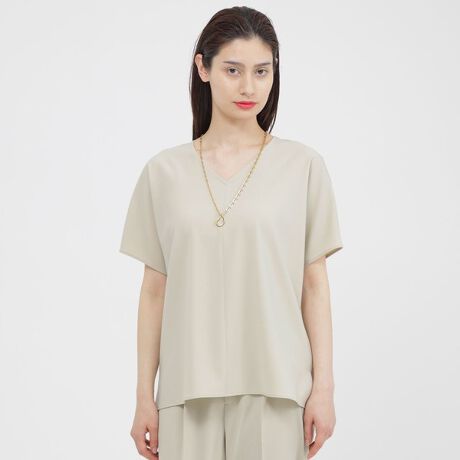 すっきりとした印象のVネックのブラウスです。