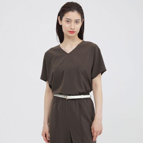同素材のワイドパンツ(K1R35724)やテーパードパンツ(K1R36724) とのセットアップでの着こなしのほか、単品ブラウスとしてもジャケットインにおすすめのアイテムです。