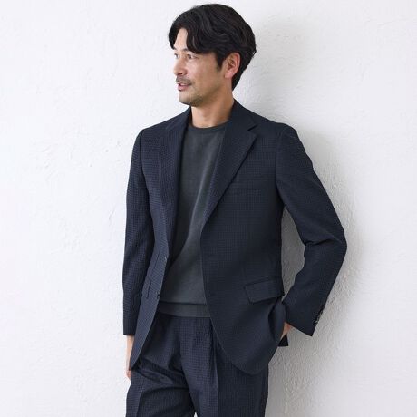 2つボタンのアンコン仕様で裏地を最小限まで省きながらも立体的な仕立て。