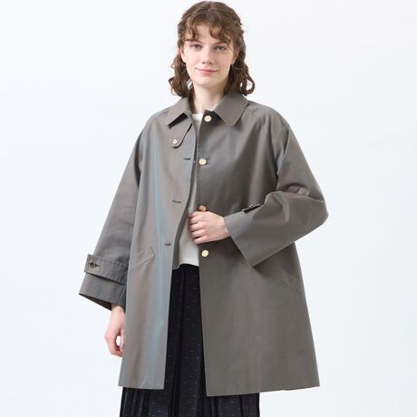 圧倒的な人気を誇る優しいAラインが魅力のWELBURY(ウェルベリー)シリーズ。小ぶりな襟と上目に配したフロントボタンのバランスが全体的にコンパクトな印象を与えています。コーディネイトしやすいレングスもポイント。スロートフラップを留めて襟を立たせれば印象がガラっと変わるのでおすすめです。フロントメタルボタンがギャバジンにリュクスなムードをプラスしています。こちらのコートは国内屈指のコート専門工場で仕立てられた最高級のステンカラーコートです。